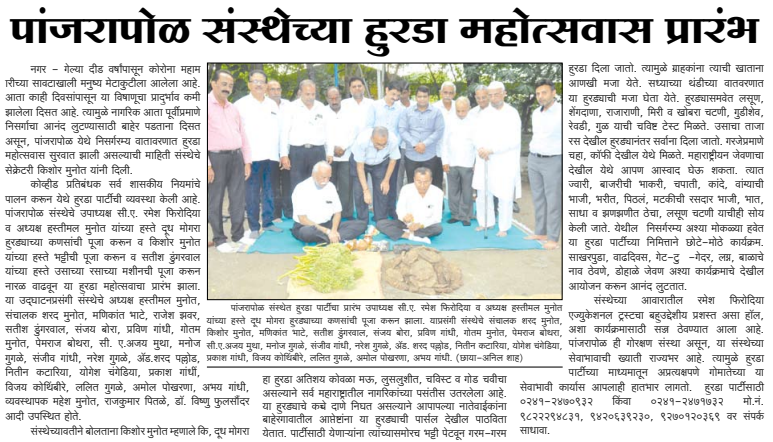 Ahmednagar – Panjarpol Hurda Mohotsav Survat (Source – Sakal News 30/11/2021)Ahmednagar – Panjarpol Hurda Mohotsav Survat (Source – Sakal News 30/11/2021) Read MoreRead More