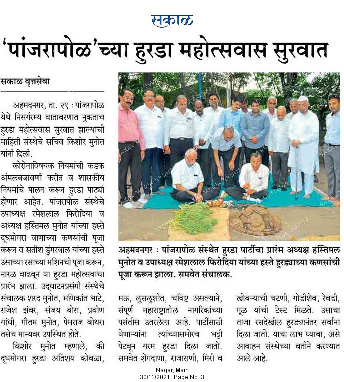 पांजरपोळ गोरक्षण संस्थेत गुलाबी थंडीत हुरडा महोत्सवाचे आयोजन( Source : Navamaratha Times)पांजरपोळ गोरक्षण संस्थेत गुलाबी थंडीत हुरडा महोत्सवाचे आयोजन( Source : Navamaratha Times)
